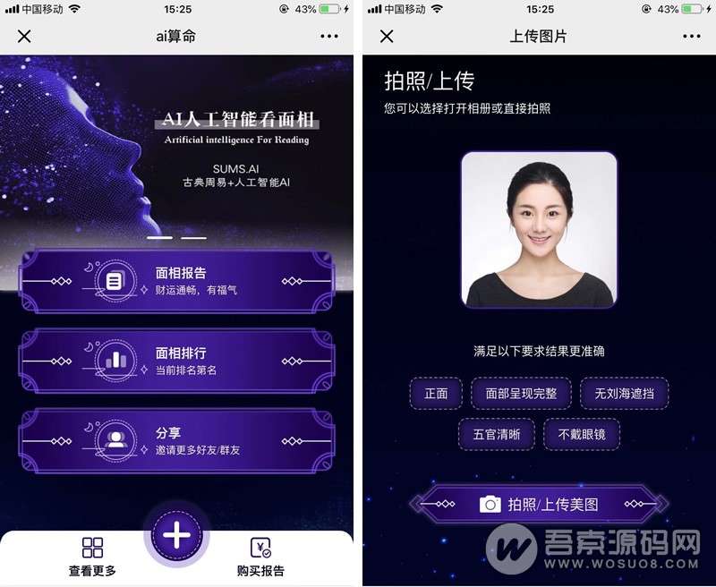 AI面相v1.1.8开源无限多开版 优化分销海报部分手机机型不支持的问题 微擎模块依据图中照片示例上传本人真实照片,经检测符合系统照片要求...