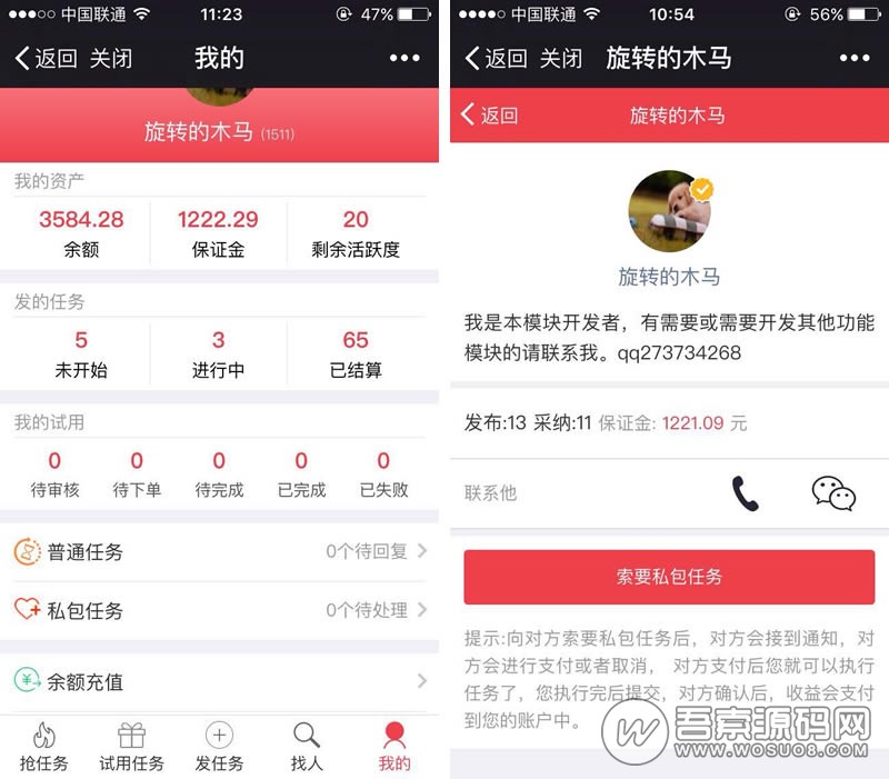 自助任务平台WQ-v2.8.7固定版 增加展页头条等功能 微擎模块商家使用流程:充值-发任务-等待会员执行回复-审核回复内容-拒绝或采纳会员使...