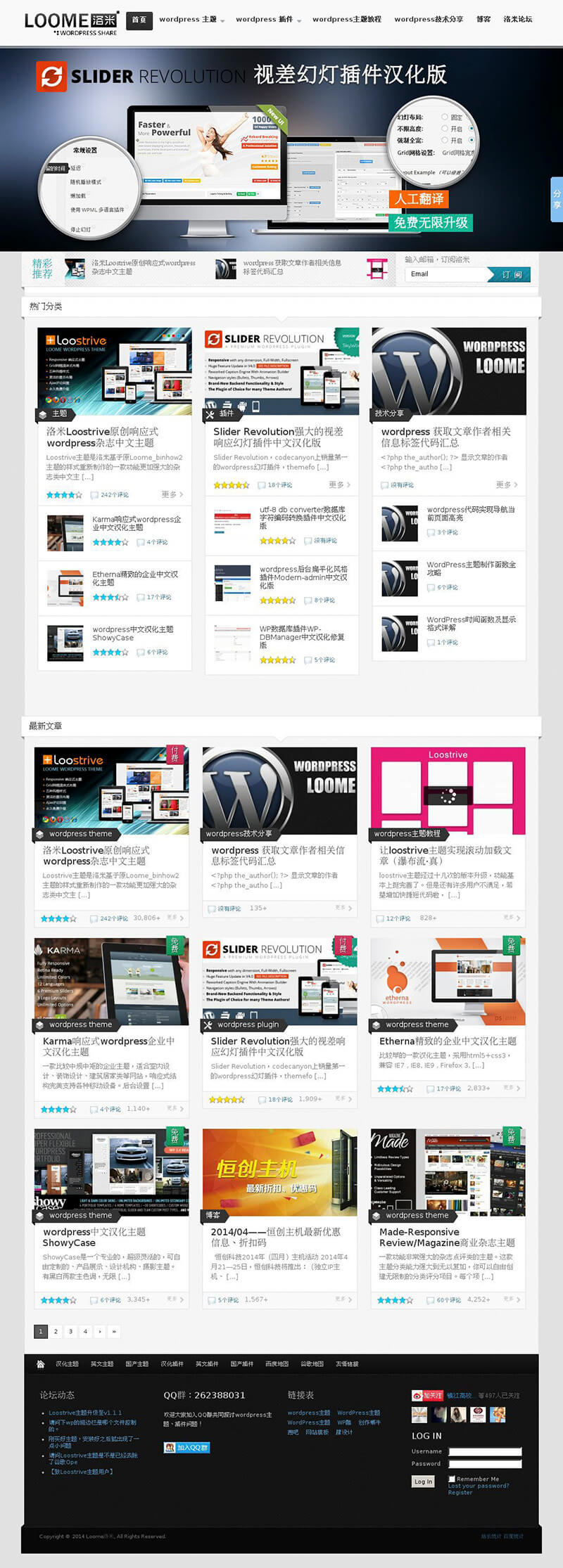 Made-Magazine主题汉化修改版的介绍摘自洛米原文,需要的插件和汉化修改版英文版已经一起打包到压缩文件里面了这个主题是洛米建站后的第二个主题(第一个用的是yootheme的cloud),也用了差不多有两年了,中间陆陆续续的给主题修修改改,也下了不少功夫。期间也有不少人想买,我也一直不同意。主题需要汉化的词条比较多,洛米没有全部汉化,前台是基本上完全汉化了,后台只汉化了一半,基本上也能看懂。因为是自用主题,所以都是按自己需要的修改,去掉了谷歌api,换上qq邮箱订阅,修改了导航样式,增加了首页全宽幻灯样式(基于Slider Revolution),修改了一些社会化按钮,修改了缩略图调用方式,增加了阅读数(需安装WP-PostViews)……其它还有很多小修改这么长时间也记不得了,需要的就拿去慢慢折腾吧