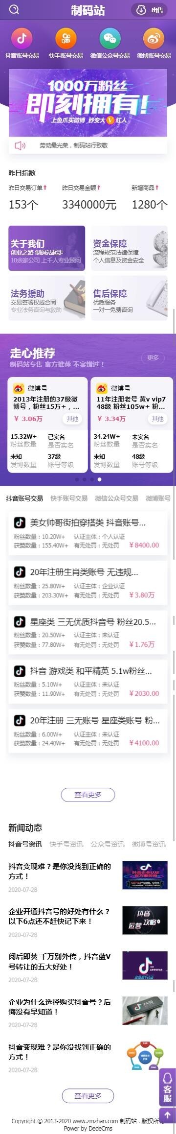 抖音号快手号转让交易自媒体账号出售展示平台源码